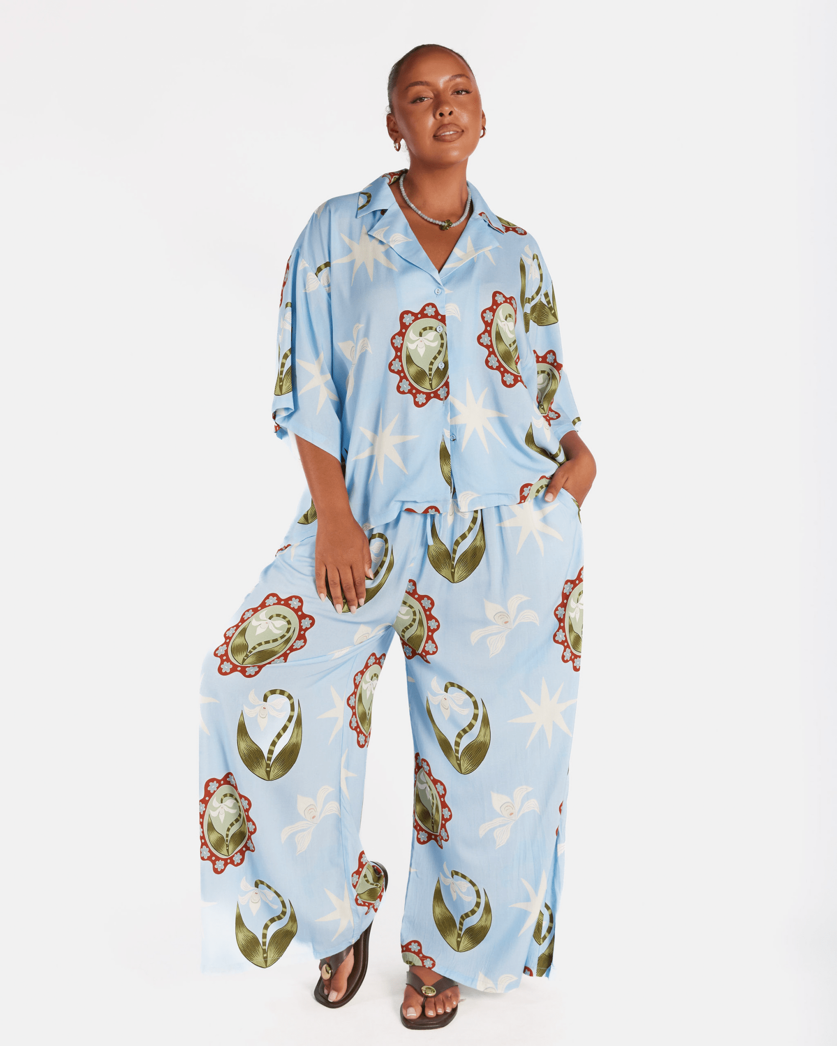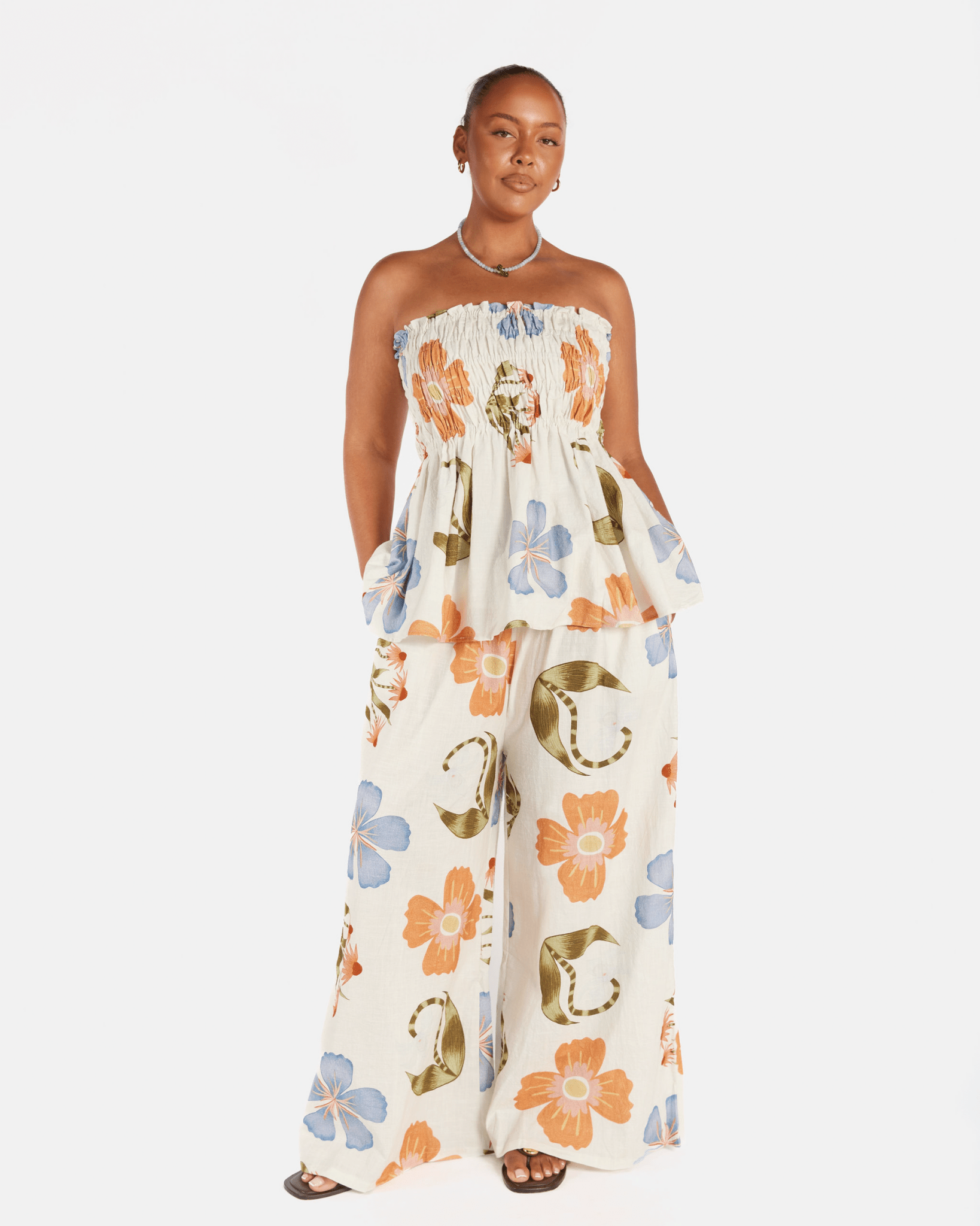 Blending romantic florals with effortless, lived-in silhouettes, La Fleur is designed to feel like it already belongs in your wardrobe. It’s soft but confident, nostalgic yet grounded. We’ve brought together easy maxi dresses, relaxed separates and versatile layering pieces in oversized blooms and wearable tones that move seamlessly from summer warmth into autumn air.