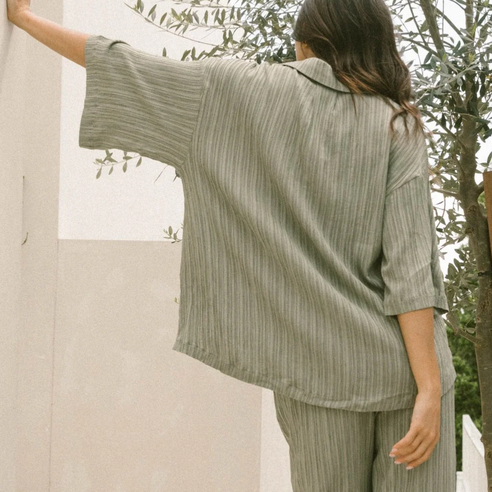 Our Crepe styles are crafted from a beautiful, breathable blend designed for comfort and elegance. Due to the nature of the loose weave, this fabric is more delicate than our cotton and linen pieces and requires extra care to maintain its quality and longevity.