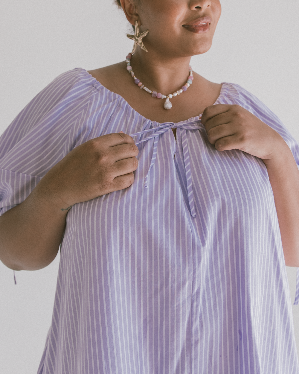 The Harvey Mini Dress is designed with an easy, relaxed silhouette that makes her an instant throw-on favourite. With her adjustable drawstring neckline and breathable cotton fabric, Harvey is equal parts playful and practical, moving with you through busy days and carefree nights.