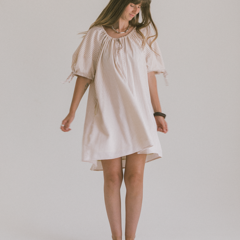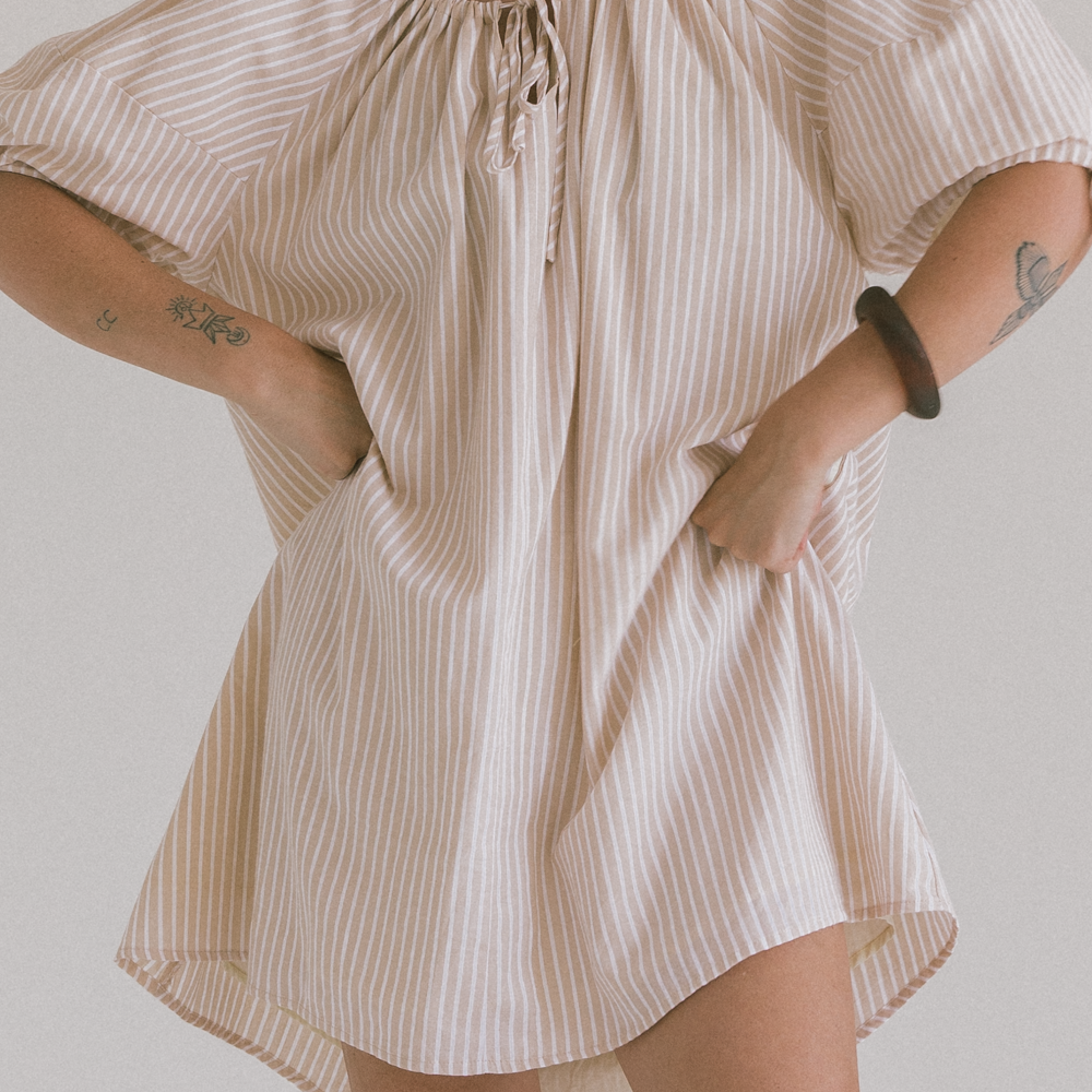 Harvey Mini Dress | Beige Stripe