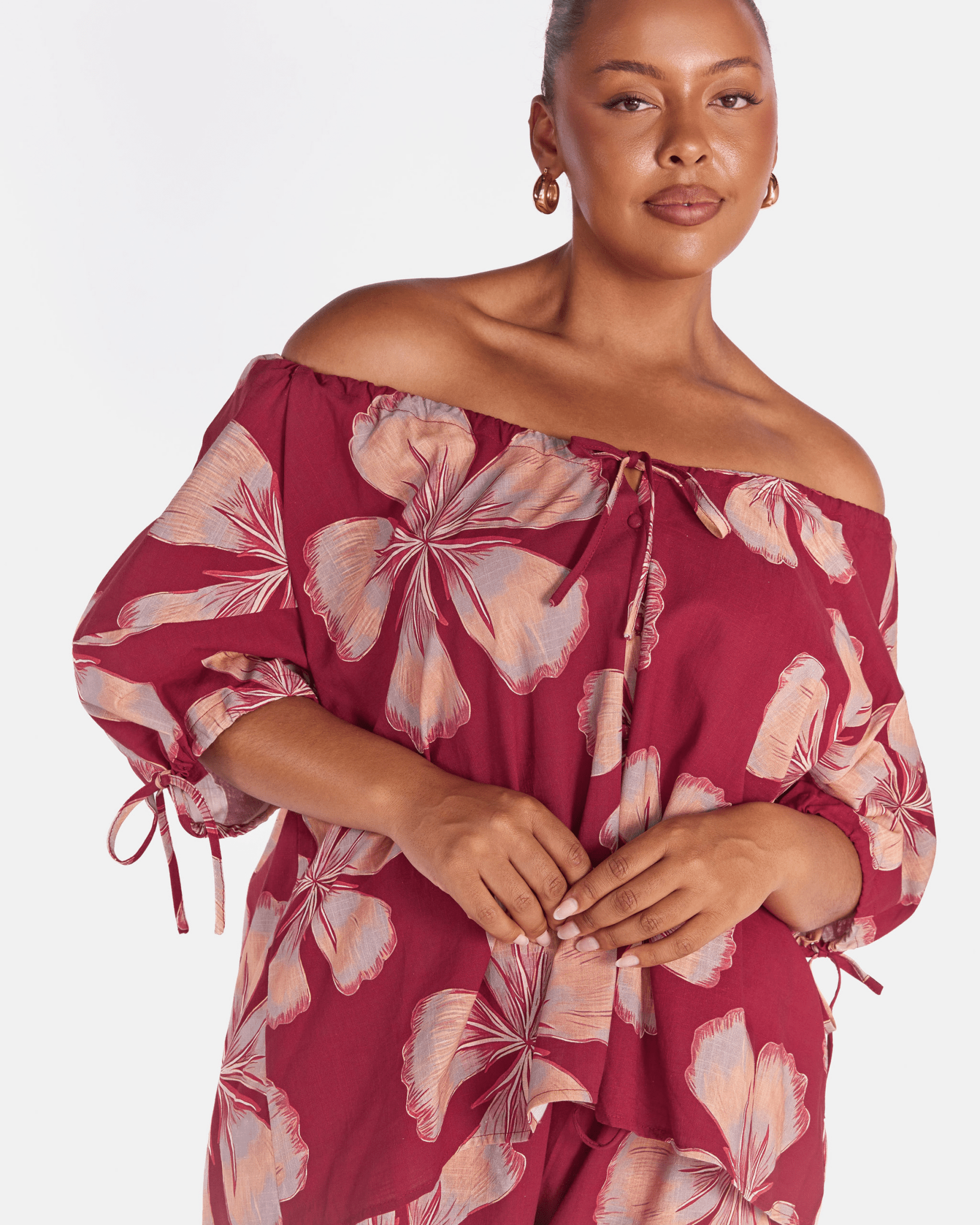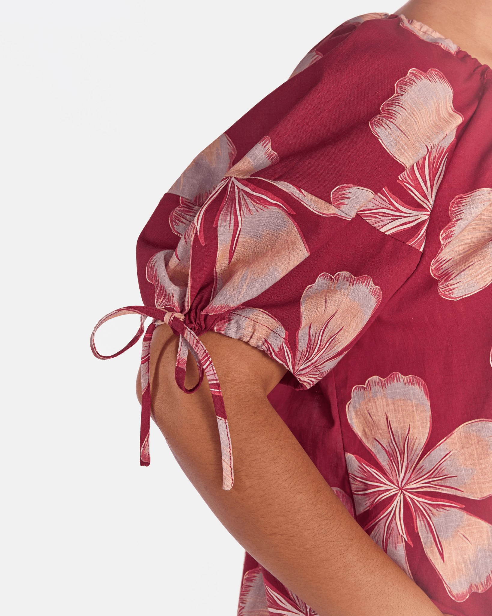- Puff sleeves with adjustable tie detail