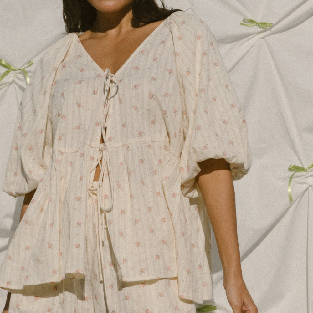 Crafted from 100% cotton and sprinkled in the sweetest Garden Breeze print, the Frankie Top is your new everyday go-to with main character charm. Featuring a cross-over bust, floaty puff sleeves, and a cute front-tie moment, she’s breezy, easy, and ready for whatever your day throws at you.