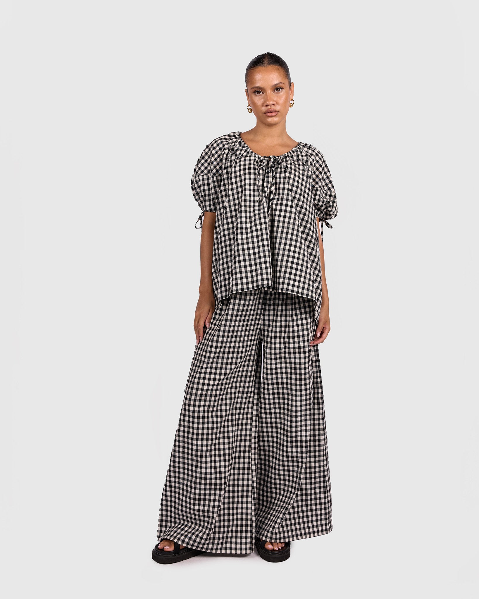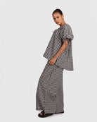 The Harvey Top in Black Gingham is the perfect mix of relaxed comfort and thoughtful detail. Crafted from 100% breathable cotton, it feels lightweight, soft, and easy to wear all day long.