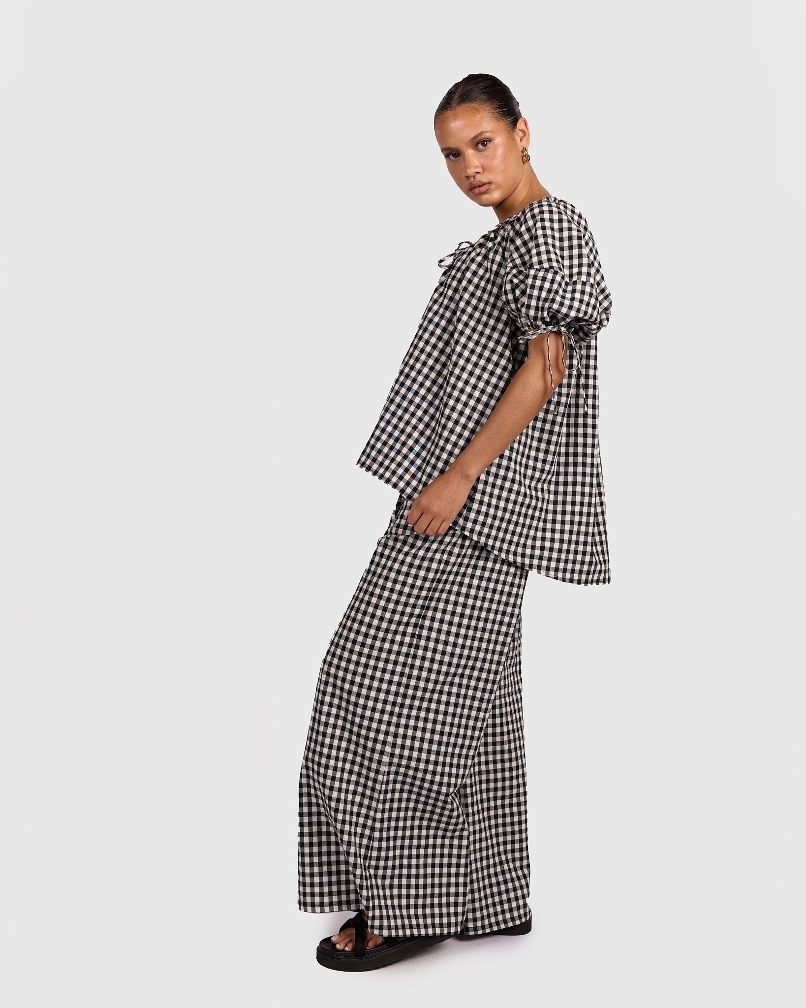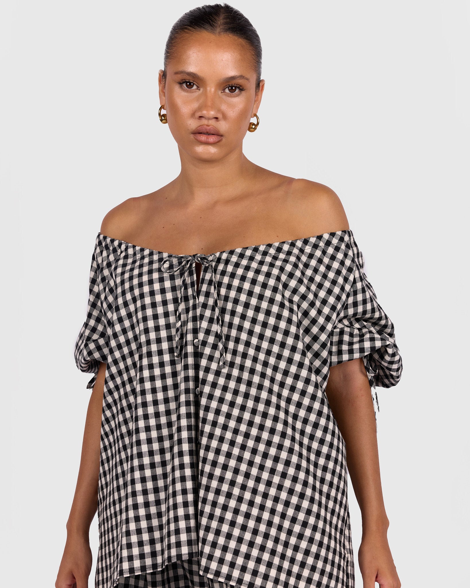 The classic black and white gingham print gives it a timeless, wear-with-everything feel. It is the kind of piece you can throw on with your favourite pants or shorts and instantly feel put together without trying too hard.