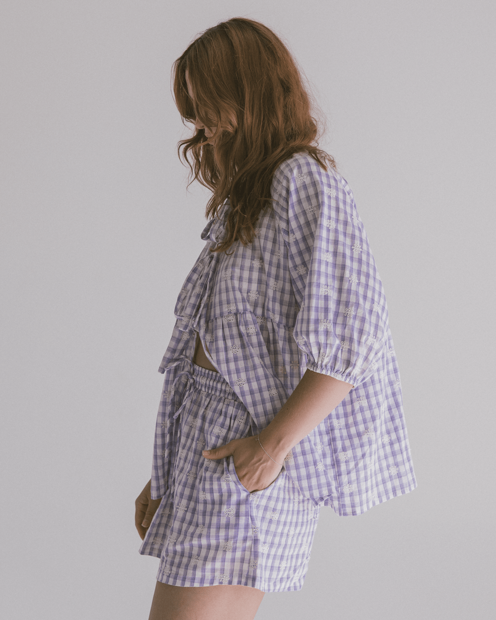 - Colour: Lavender Gingham Embroidery