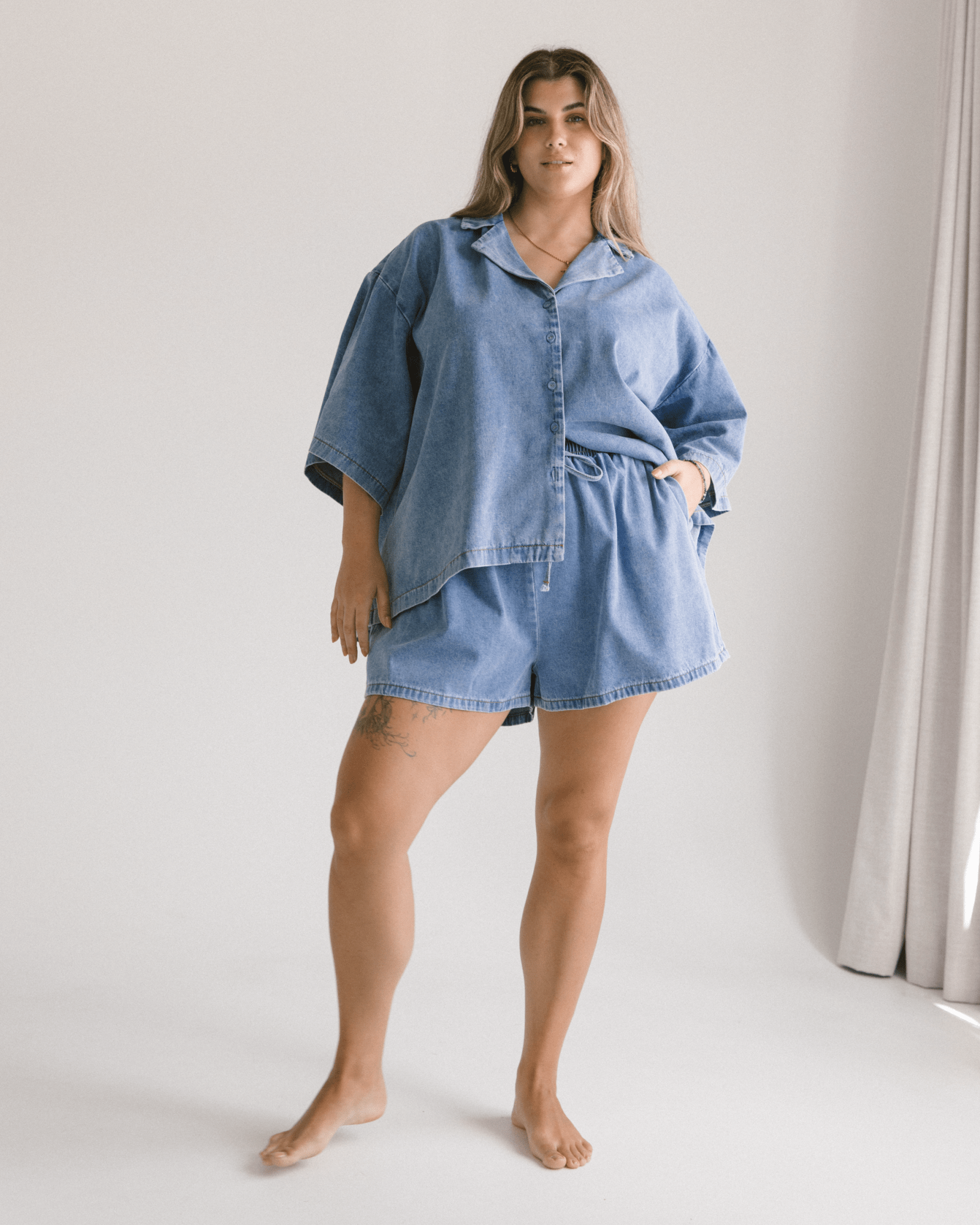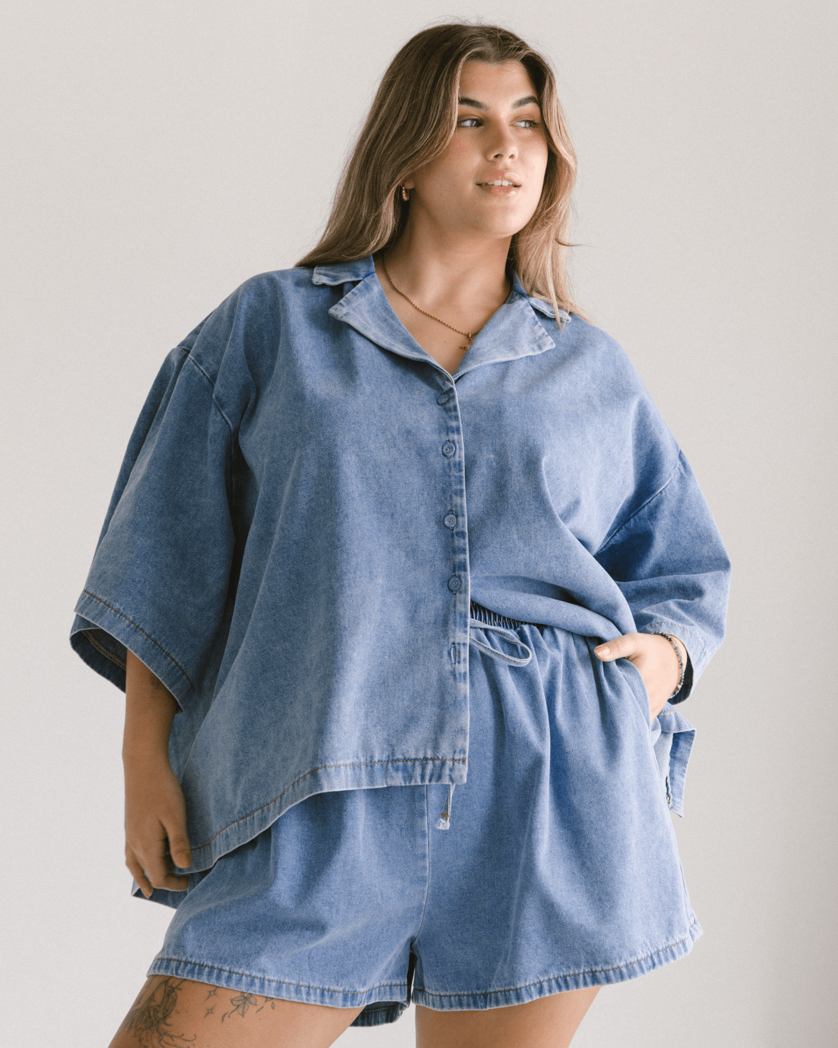 - Made from breathable 100% cotton light denim