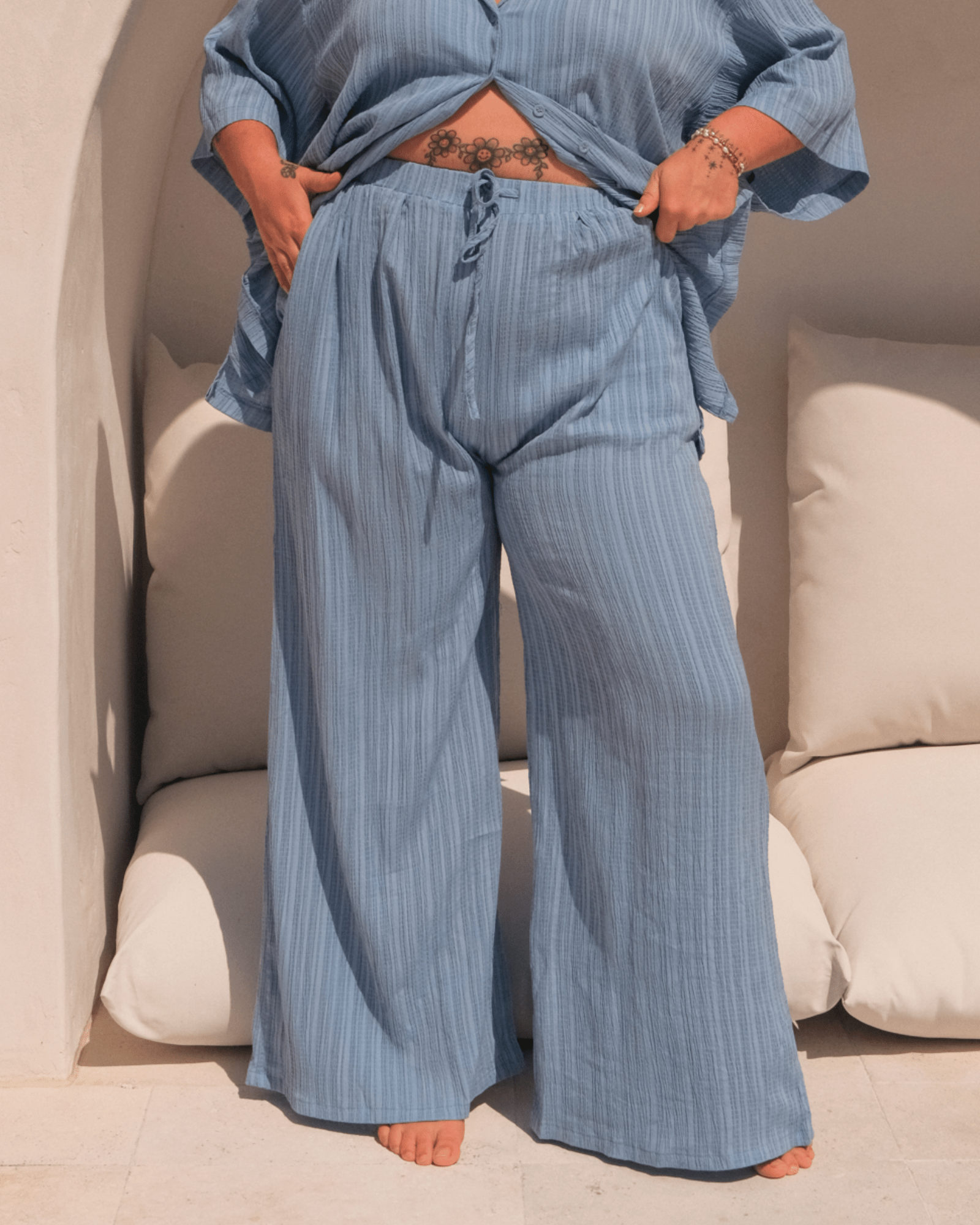 Comfort, but make it cute. Our Posey Pants are basically your new uniform for everything from couch hangs to cocktails. With their oversized, flowy fit and breezy fabric, these pants are ready to take you from bed to beach to “oh, this old thing?” brunch plans without breaking a sweat.